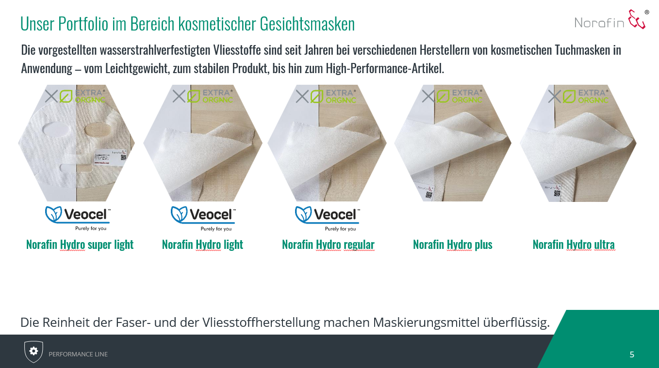Neben den Vorteilen der Lyocell Skin- Faser bieten die Vliesstoffe von Norafin zusätzlichen Nutzen gegenüber marktüblichen Gesichtsmasken: